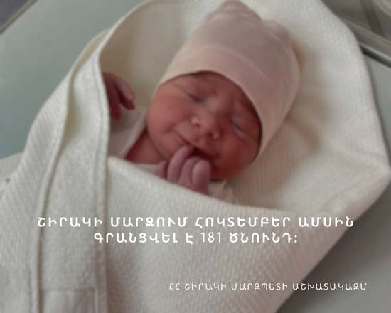 Շիրակի մարզի ծննդօգնություն իրականացնող բուժհաստատություններում 2025 թվականի նոյեմբեր ամսին ծնվել է 181 երեխա։