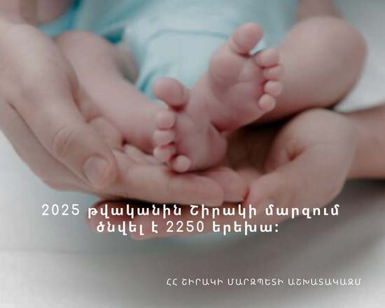 2025 թվականին Շիրակի մարզում ծնվել է 2250 երեխա