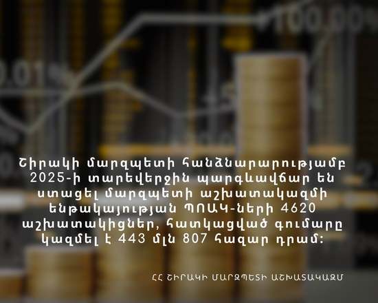 2025-ի ավարտին մարզպետի աշխատակազմի ենթակայությանայն ՊՈԱԿ-ները աշխատակիցներին հատկացրել են պարգևավճար՝ 443 մլն 807 հազար դրամ գումարի չափով