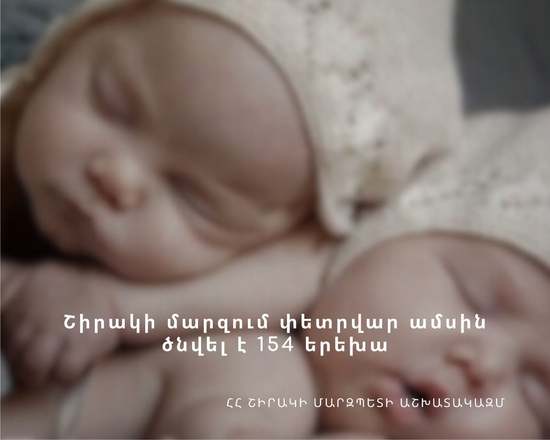 Շիրակի մարզում փետրվար ամսին ծնվել է 154 երեխա