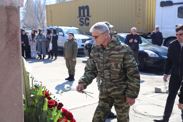 Շիրակի մարզպետի տեղակալ Ալբերտ Այվազյանն աշխատակազմի պատասխանատուների հետ ծաղիկներ է խոնարհել սպարապետի անունը կրող «Գյումրու թիվ 19 հիմնական դպրոցի» բակում տեղադրված կիսանդրու առջև, հարգանքի տուրք մատուցել նրա հիշատակին: