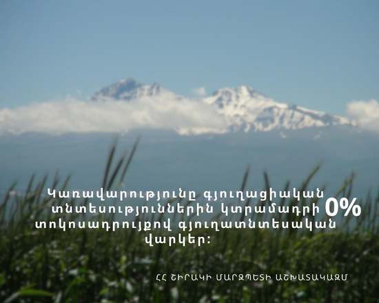 Կառավարությունը գյուղացիական տնտեսություններին կտրամադրի 0% տոկոսադրույքով գյուղատնտեսական վարկեր