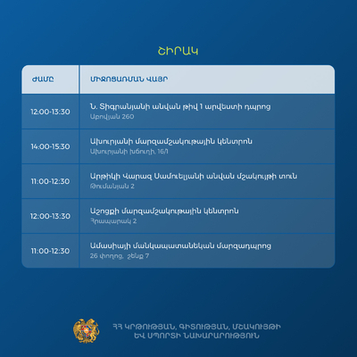 Ախուրյանի մարզամշակութային կենտրոնի դահլիճ-14:00-15:30